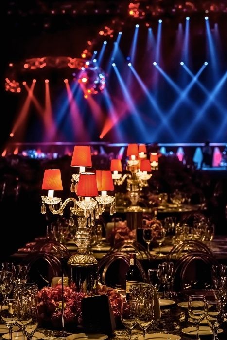Corporate gala events featuring tailored branding, lighting, and stage design